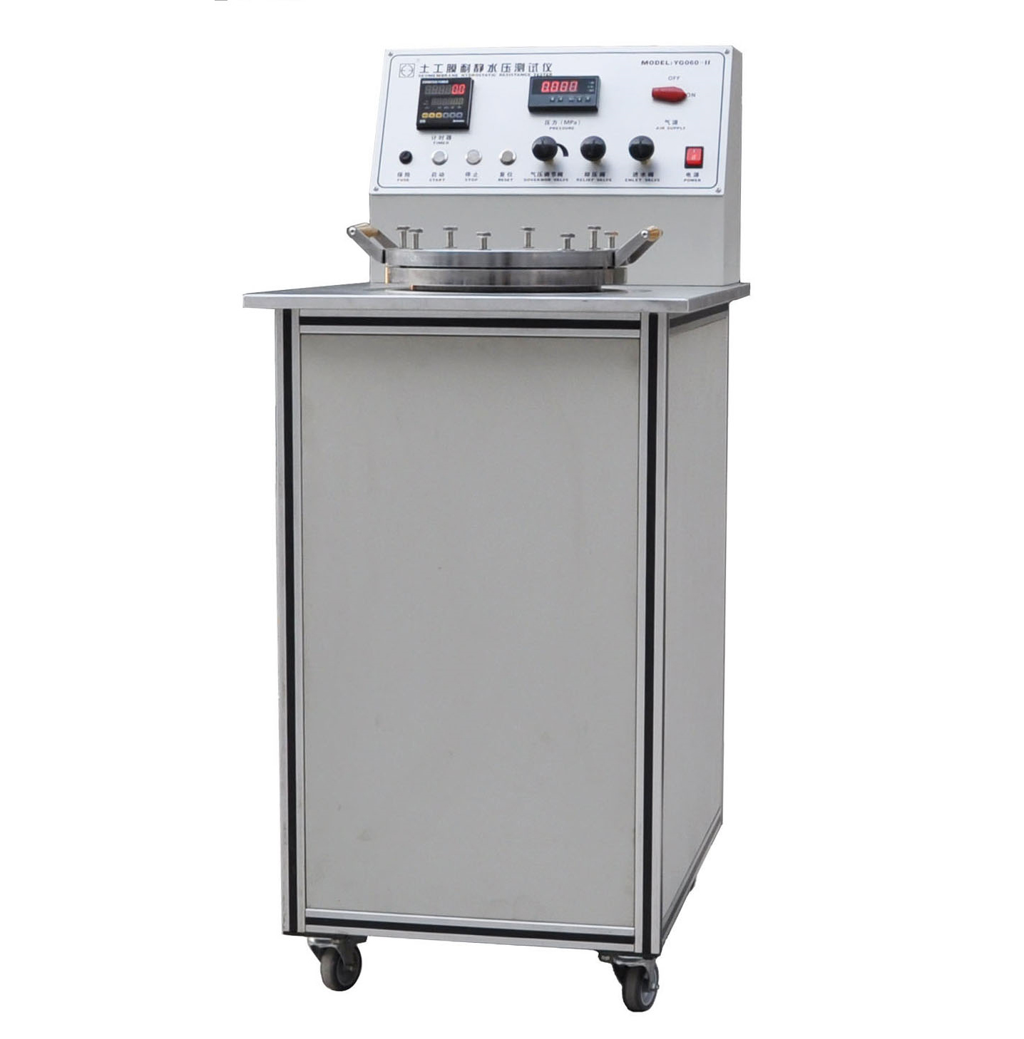 224 YG060-Ⅲ 土工膜耐靜水壓測(cè)試儀 GB/T19979.1-2006、GB/T19979.2-2006、GB/T17642、JTG E50 T1142等標(biāo)準(zhǔn)。